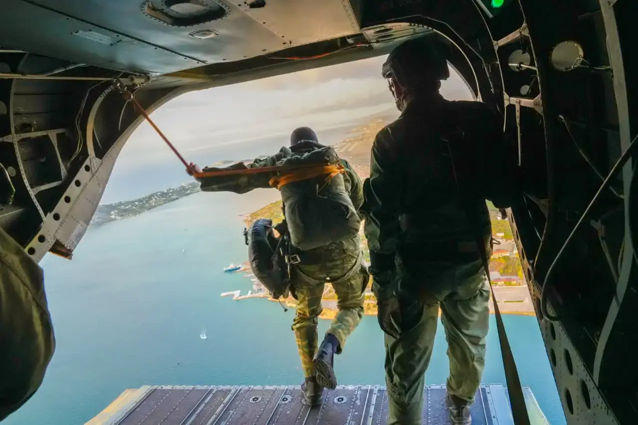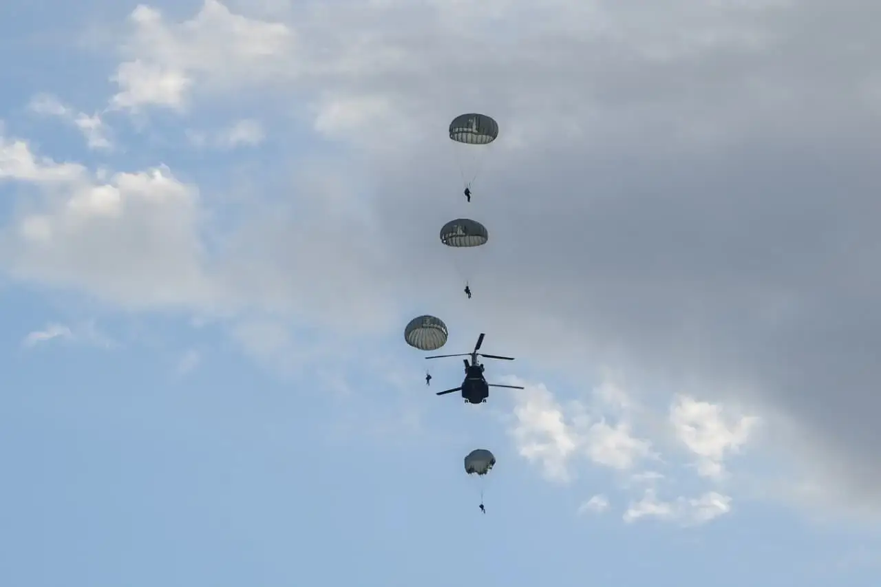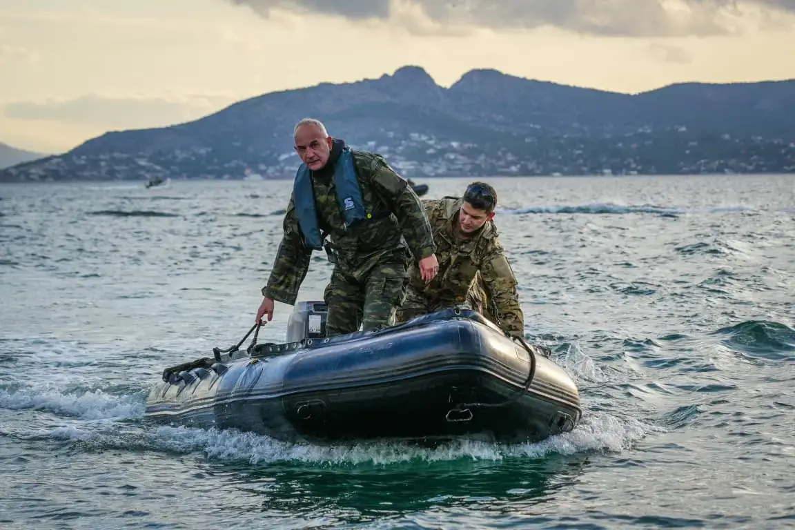 Θαλάσσιο άλμα στατικού ιμάντα, από ελικόπτερο CH-47D Chinook, πραγματοποίησε ο αρχηγός ΓΕΕΘΑ στρατηγός Δημήτριος Χούπης καθώς και μόνιμοι – έφεδροι από Μονάδες Ειδικών Επιχειρήσεων, στο πλαίσιο της απαιτητικής στρατιωτικής άσκησης «Orion-25».