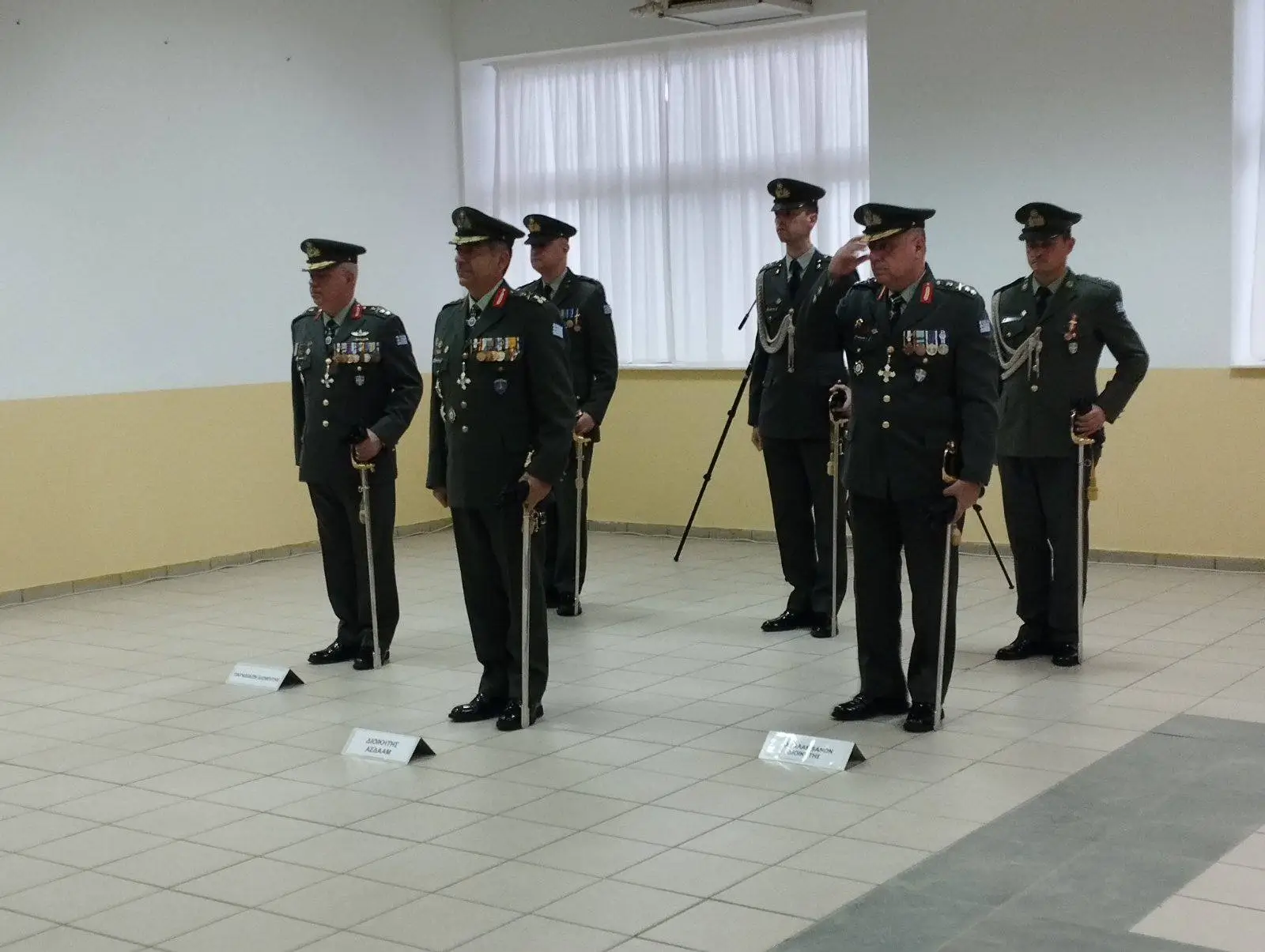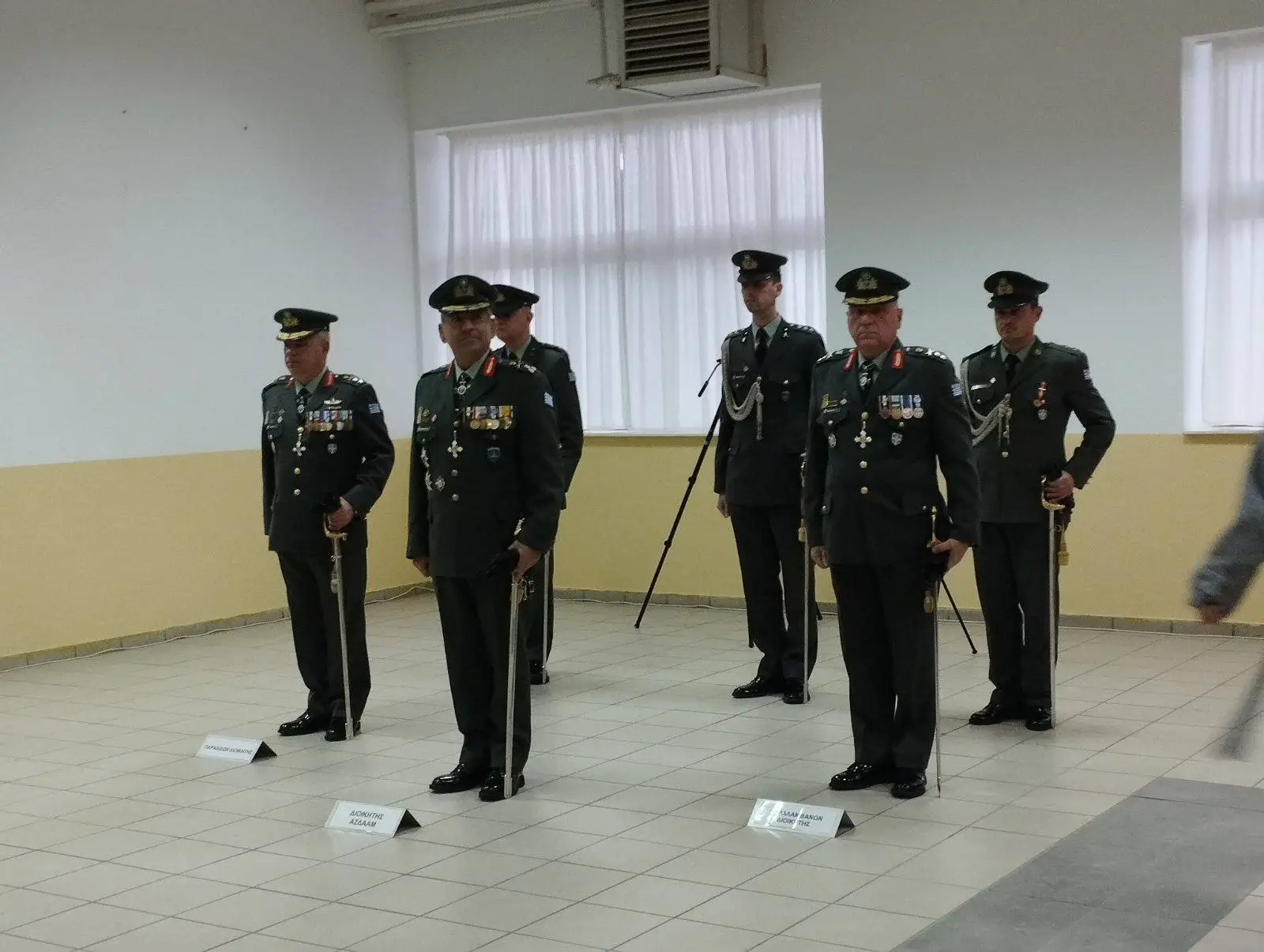 Η τελετή πραγματοποιήθηκε σε εσωτερικό χώρο του Στρατοπέδου «Υπολοχαγού Μακρή Μιχαήλ», λόγω των δυσμενών καιρικών συνθηκών που επικρατούσαν στην περιοχή.